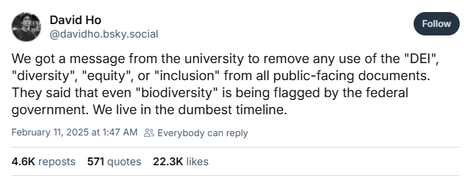 A Bluesky post today from David Ho, a professor at the University of Hawai’i, shared a sentiment I think we can all agree with: