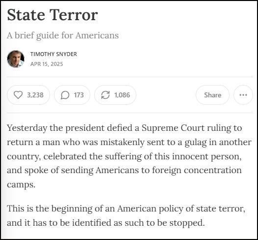 But that's the disturbing part... it's bad enough that it was mistaken, and the Supreme Court clearly said this was illegal... Now, they're not even trying to get him back. The ramifications to the rule of law are big, but basic right and wrong makes this story shocking to the conscience. All Trump has to do is ask, and he won't do it. That's the behavior of a monster... The USA doesn't send people to foreign gulags without proving them guilty first.