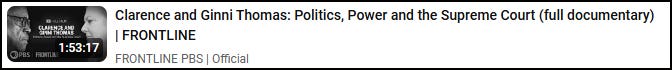 Considering he’s appointed for life and we have found out he’s buddy-buddy with a few Republican billionaire donors, Frontline did us the favor of doing a two-hour life story about Clarence Thomas. I’ve watched it twice; very good.