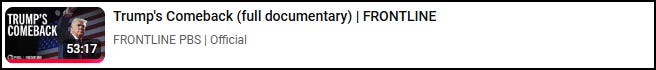 Think of this as a Frontline starter pack, with episodes chosen to help you better understand the moment we’re in and the people making decisions. Clicking on the image takes you straight to YouTube!