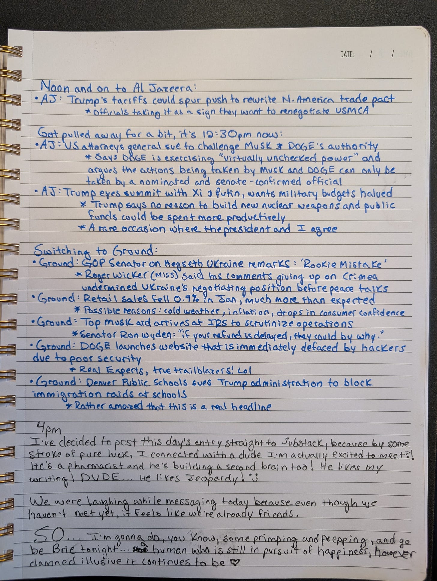 As many of you know, I started writing what I'm calling the Trump 2.0 Archive Journal out of fear that attempts would be made to write history… differently these next few years. It has also turned out to be a very grounding activity for this blitz of news we've all been experiencing. Two birds, one stone! Highly recommend if you enjoy writing.